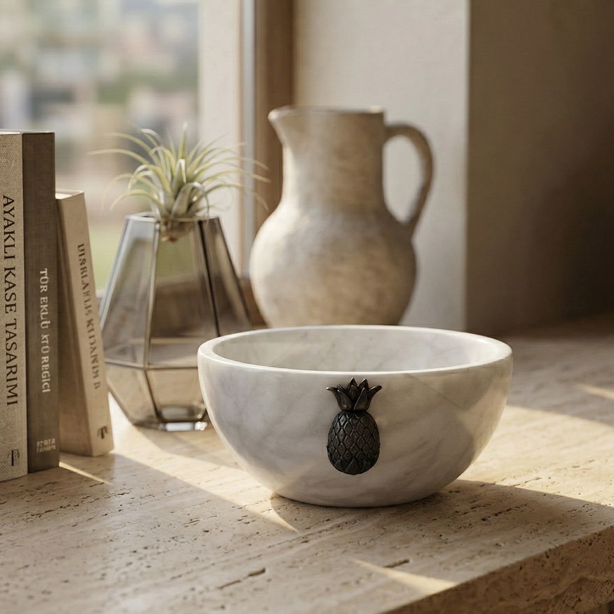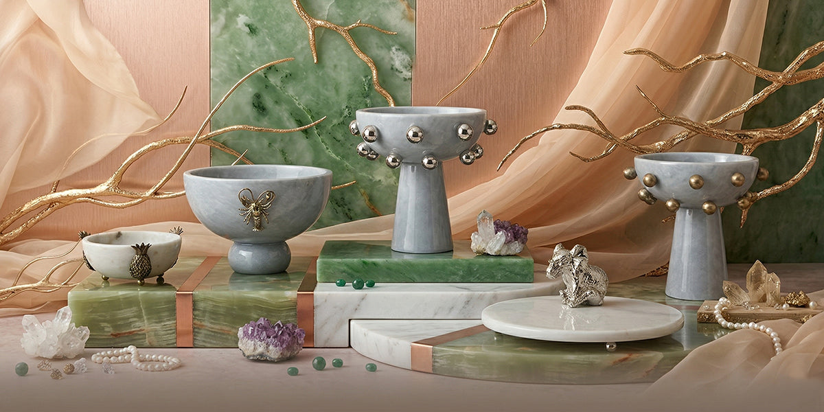 Altın Top Detaylı Ayaklı Mermer Kase
